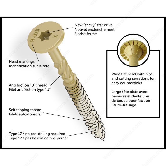 • Extra wide flat head with nibs and cutting serrations for unparalleled fit and finish.