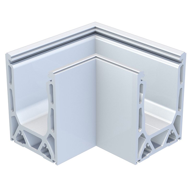 • 90° aluminum extruded 6″ mitered and welded for inside corner.