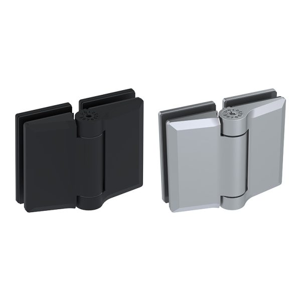 - Spring hinge for glass-to-glass application, complying with pool fencing requirements.